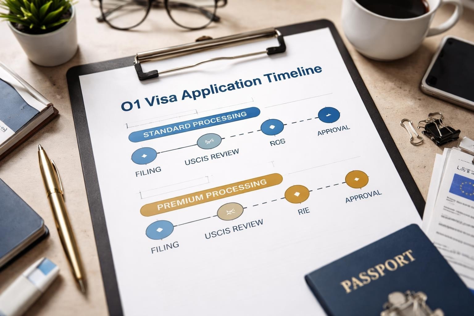 Understanding the standard O-1 visa processing timeline helps coordinate these multiple stages effectively.